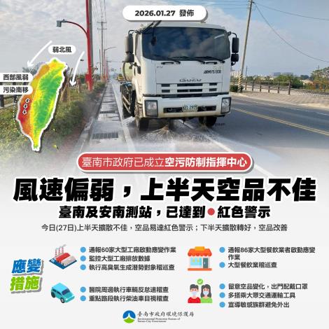 市長 黃偉哲 提醒:近期清晨易起霧,空品轉差風險較高,市民朋友外出請記得做好防護。市民戶外活動建議先查詢空氣品質:https://airtw.moenv.gov.tw/