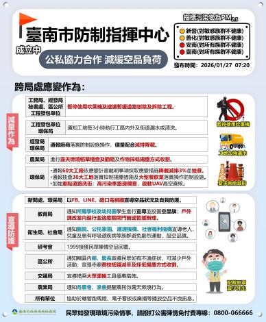 市府及工廠工地已從昨日(1/26)陸續啟動應變減緩空污:環保局加強污染源稽查,減緩這波空氣污染。