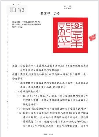 🌀(臺南市114年丹娜絲颱風農業天然災害)-:+ - +:-
