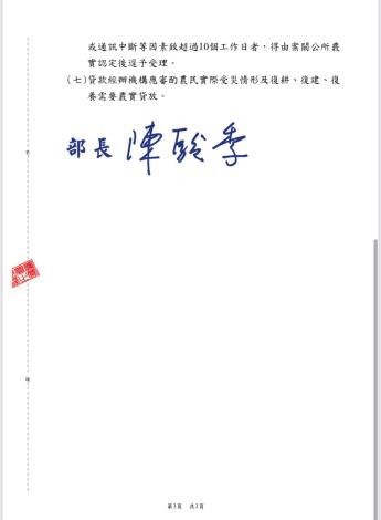 ⚝民眾可多利用農業部「農產業天然災害現地照相APP」拍照記錄田區災損情形,並於救助受理時限上傳照片,以加速復耕及救助審核時間。