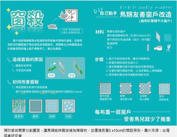 1、貼上防鳥網點/格狀線條/圖案:主要讓鳥類能辨識窗