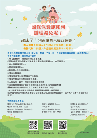 可洽詢您戶籍所在地之區公所,或是以下單位: