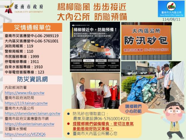 防汛砂包領取窗口:農業及建設課06-5761001#221